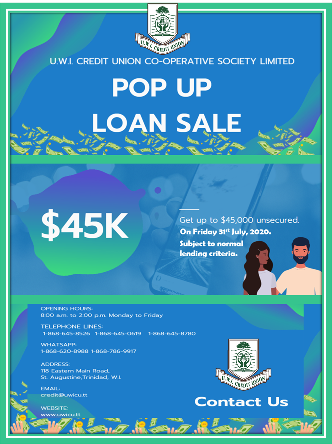 UWICU ONE DAY POP UP LOAN SALE ON FRIDAY 31ST JULY, 2020