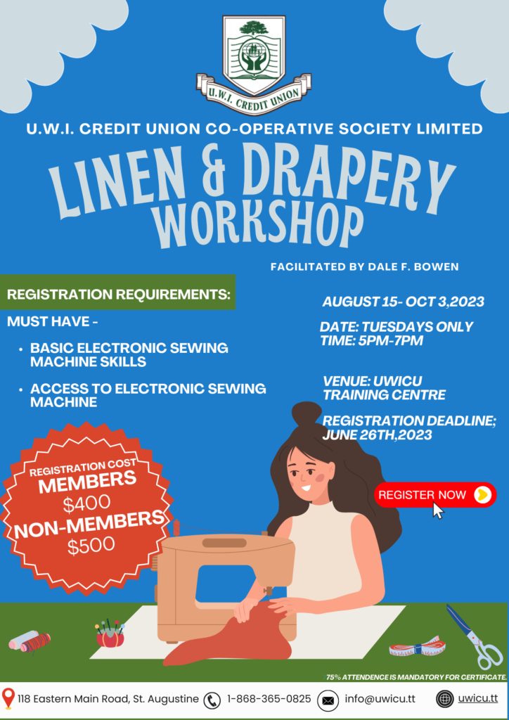 CLICK HERE TO REGISTER FOR UWICU LINEN & DRAPERY WORKSHOP 2023