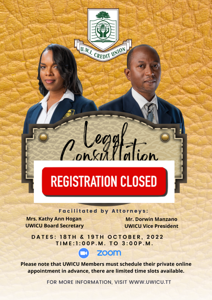 View large News UWICU LEGAL CONSULTATION SESSIONS 2022 Click here to register for Virtual UWICU Legal Consultation 2022 was last modified: October 6th, 2022 by Fayola Jones Share Post Previous UWICU INTERNATIONAL CREDIT UNION 2022 INITIATIVES SCHEDULE Next UWICU NOTICE 05/10/2022 Related postsMore detailsNews✨🦾CARIRI’S BUSINESS HATCHERY: THE PROFIT FORMULA SESSION✨🦾 September 17, 2025 at 11:35 am by Jasmin Samuel … was last modified: September 18th, 2025 by Jasmin Samuel More detailsNewsExternal Post September 9, 2025 at 2:01 pm by UWI Credit Union … was last modified: September 9th, 2025 by UWI Credit Union More detailsNewsNotice of Insurance September 9, 2025 at 1:40 pm by UWI Credit Union … was last modified: September 9th, 2025 by UWI Credit Union More detailsNewsUWICU GROUP HEALTH AND LIFE INSURANCE- MONTHLY 1ST WEDNESDAY OFFICE VISIT November 2, 2023 at 8:38 am by Janiele Campbell … was last modified: November 2nd, 2023 by Janiele Campbell More detailsNewsMedia Release Title October 29, 2023 at 1:17 pm by UWI Credit Union … was last modified: November 1st, 2023 by UWI Credit Union